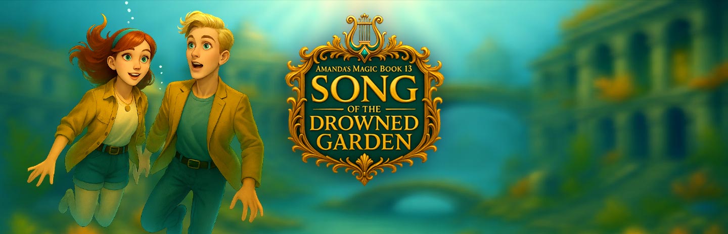Amanda's Magic Book 13: Song of the Drowned Garden takes Amanda and Charlie from a festival night in Venice into the depths of Giardino Affondato, a breathtaking realm hidden beneath the waves. Drawn through a mysterious melody, they discover a world where music sustains life and silence brings ruin. Guided by Sereluna, a fallen songstress, they must rebuild ancient instruments, restore lost harmonies, and uncover the truth behind a shattered symphony that once protected the garden.