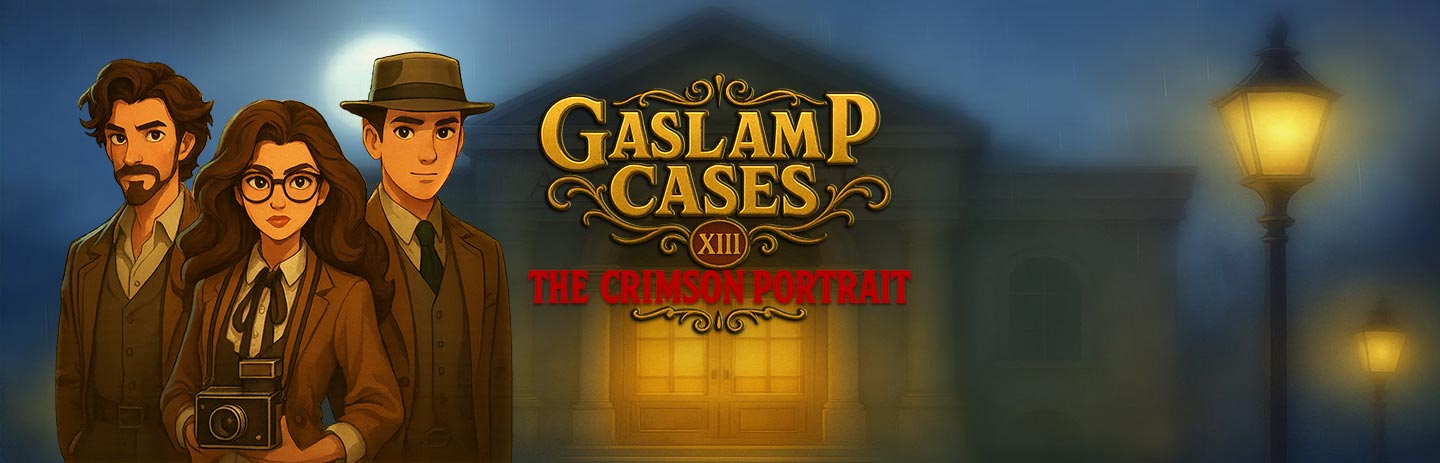 Gaslamp Cases 13: The Crimson Portrait plunges you into Ravenhollow, a once-thriving city now paralyzed by dread. At the center of the terror stands a single painting: The Crimson Portrait. Every person who has looked upon it has met the same chilling fate, their final moments etched in silent horror. The city's grand gallery has been sealed, its halls abandoned after a string of gruesome deaths.