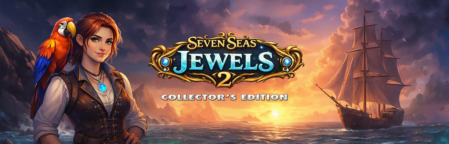 Seven Seas Jewels 2 Collector's Edition sends you on a sweeping Match 3 adventure filled with danger, magic, and devotion. When the dark siren Narissa curses Rowan, binding his life to an ancient vow, his strength begins to fade. Refusing to lose him, Polly sets out across stormy seas, forgotten islands, and cursed shores in search of a way to break the spell.